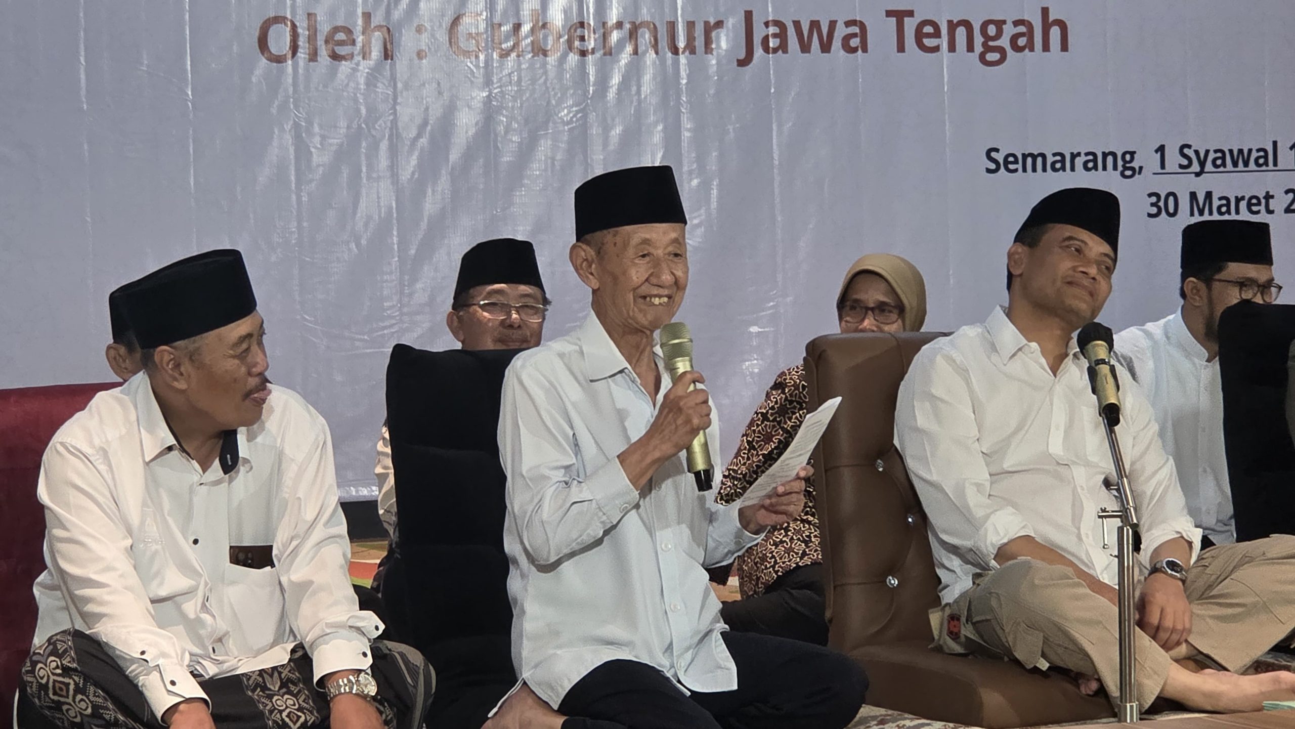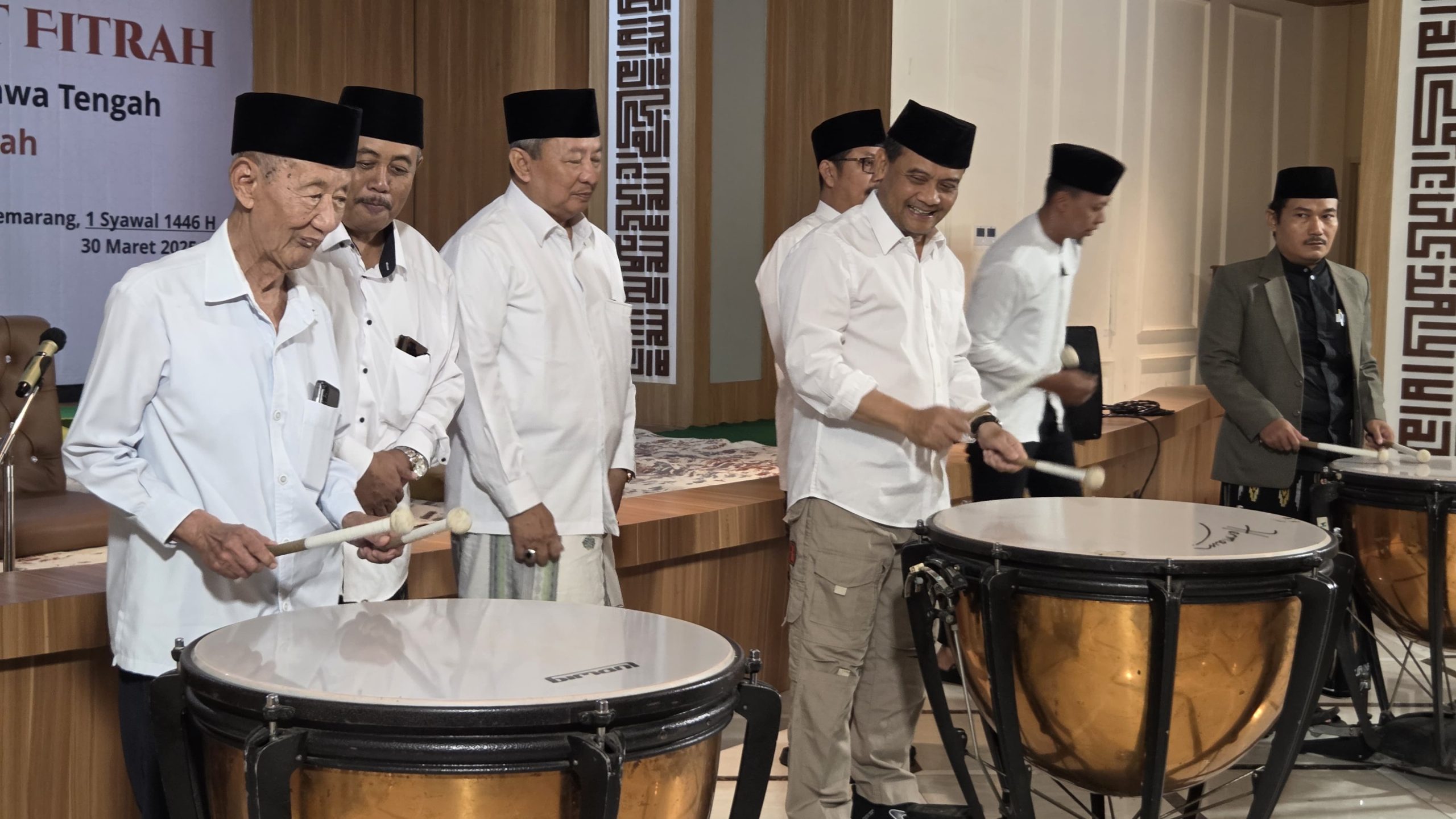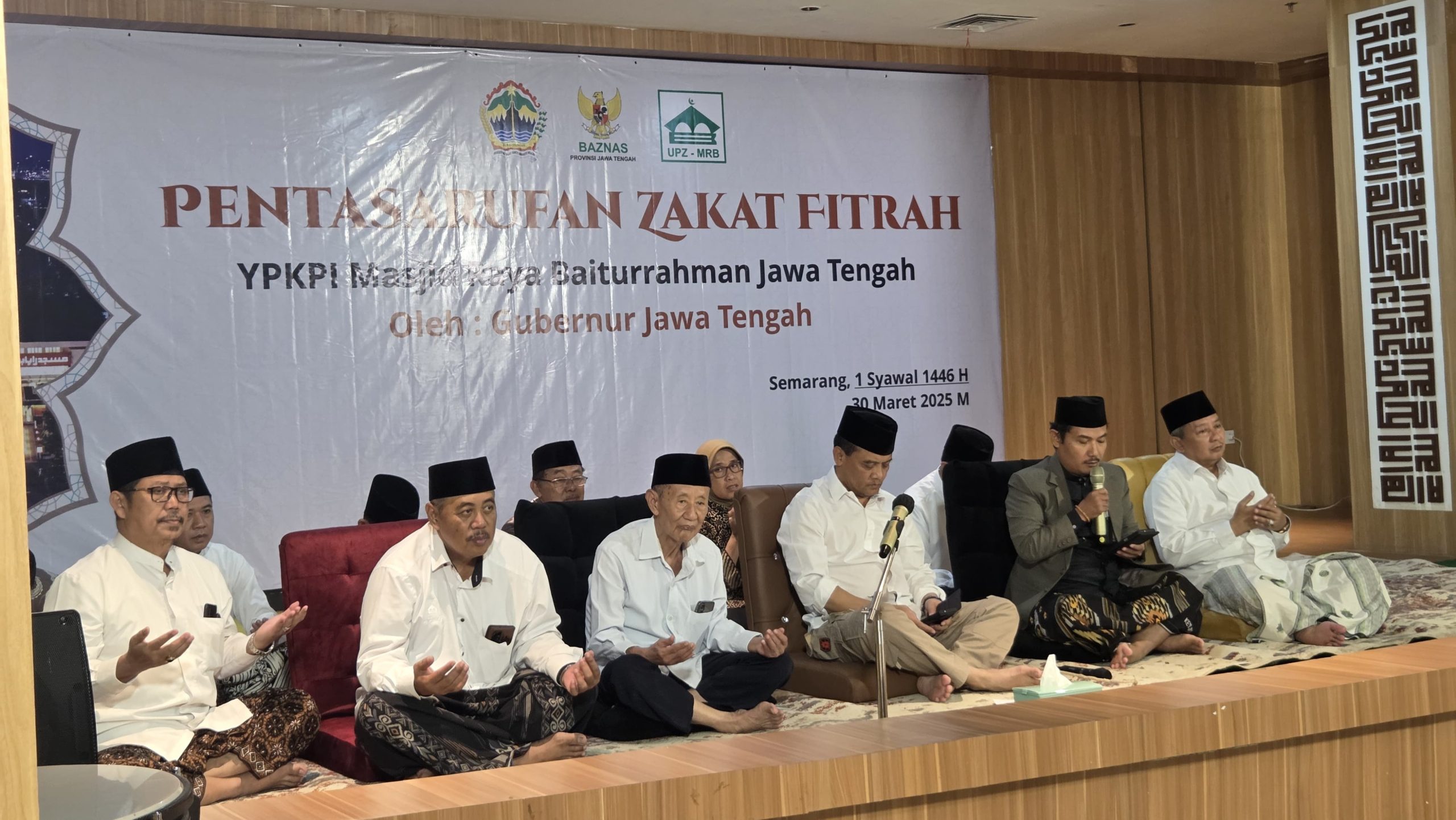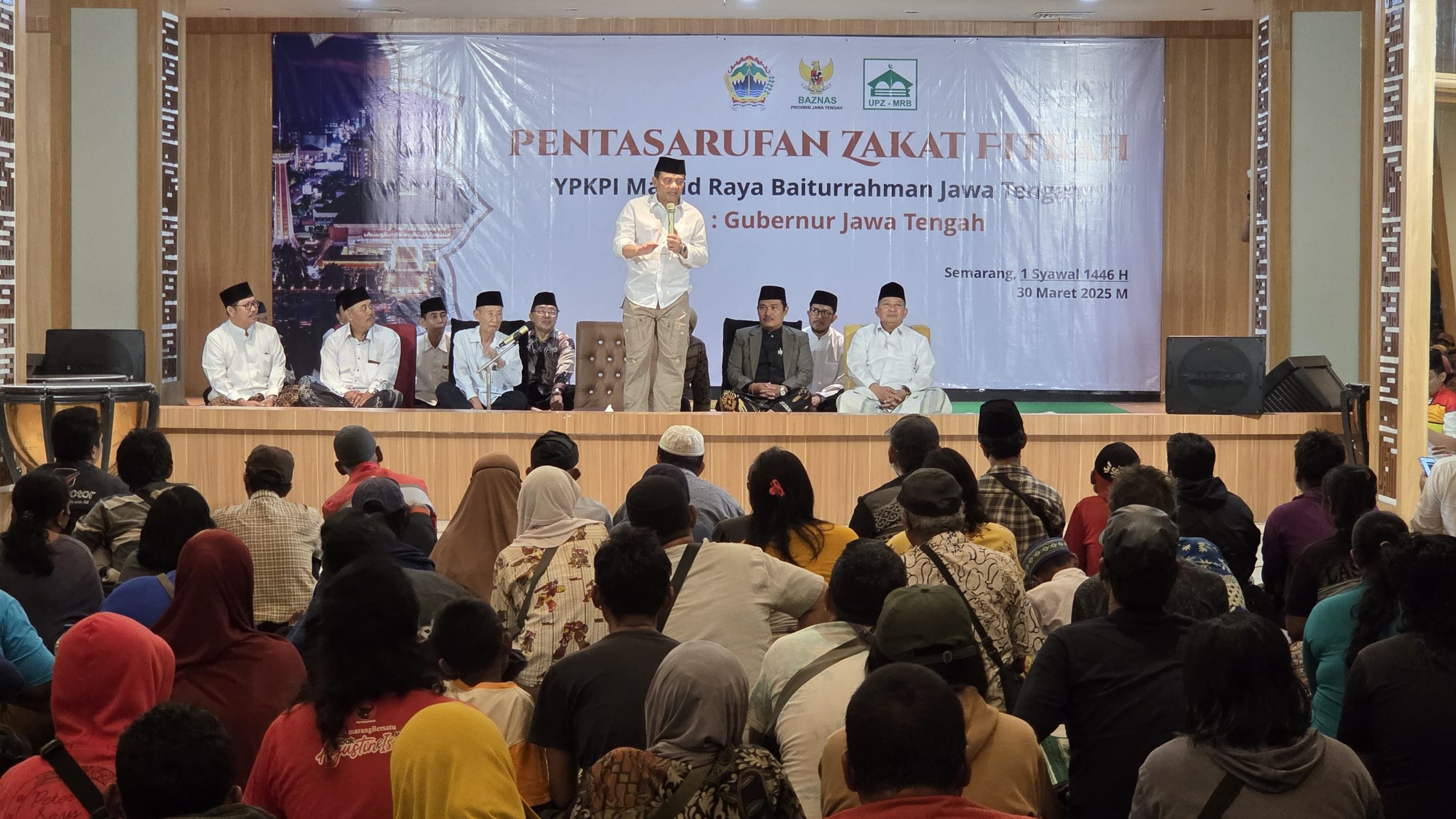 Gubernur Jawa Tengah Komjen Pol (Purn) Drs. Ahmad Luthfi, S.H., S.St.M.K.  bersama Ketua Umum YPKPI Masjid Raya Baiturrahman Jawa Tengah Dr. KH. Ahmad Darodji, M.Si. membagikan zakat fitrah kepada para mustahiq di Masjid Raya Baiturrahman, Jalan Pandanaran 126 Semarang, Minggu (30/4/2025).