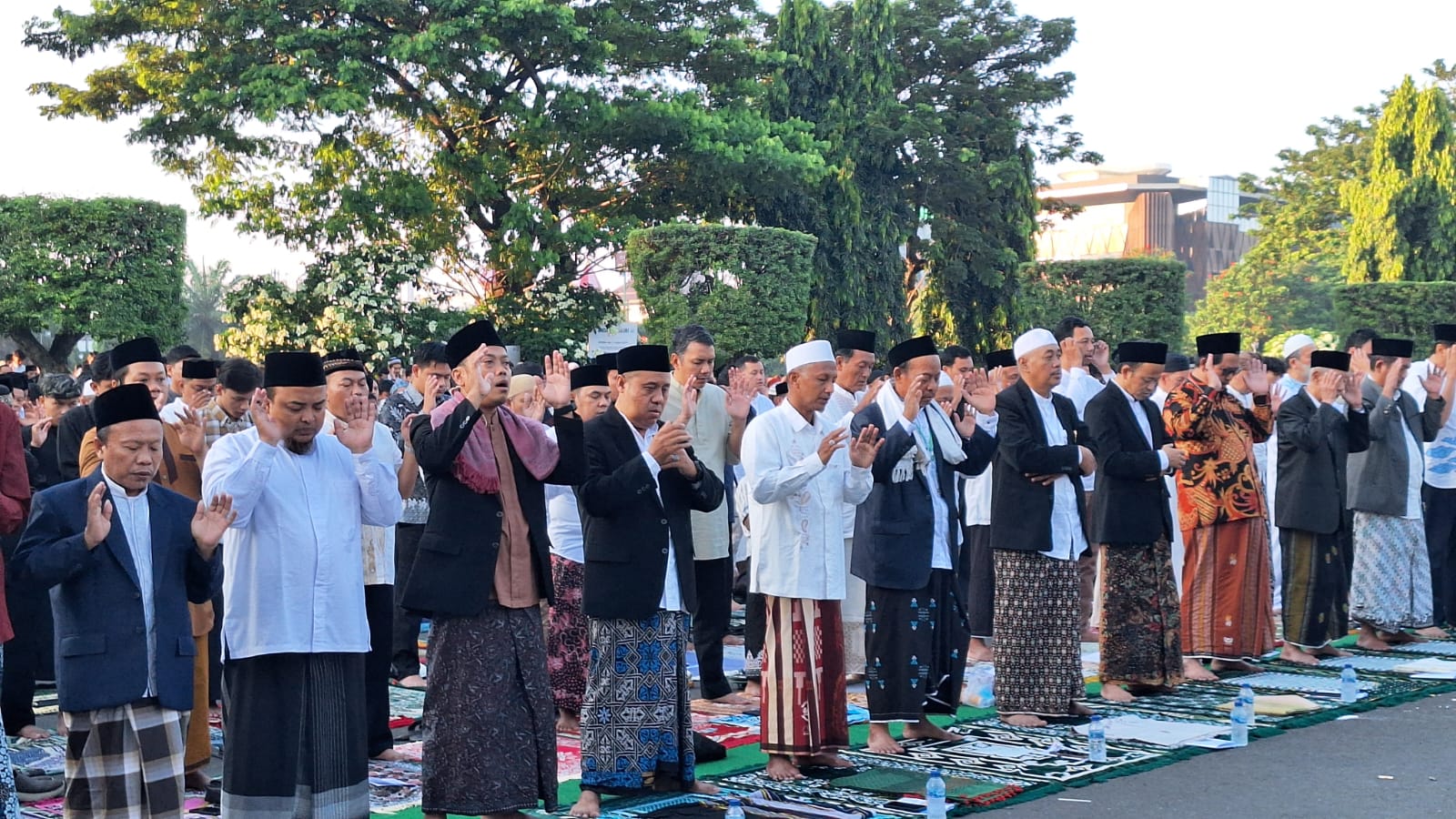 Salat Idul Adha yang dimulai pada pukul 06.30 WIB itu dihadiri oleh Asisten 1 Bidang Pemerintahan dan Kesejahteraan Rakyat Setda Jateng Iwanuddin Iskandar, S.H., M.Hum., Kabid Penaiszawa Kanwil Kemenag Jateng, H. Imam Bukhori, S.Ag., M.Si., Ketua Umum YPKPI Masjid Raya Baiturrahman Jateng Dr. KH. Ahmad Darodji, M.Si., dan Ketua Bidang Takmir Masjid Raya Baiturrahman, sekaligus Panitia Penyelenggara Salat Idul Adha, Dr. H. Multazam Ahmad, M.A.