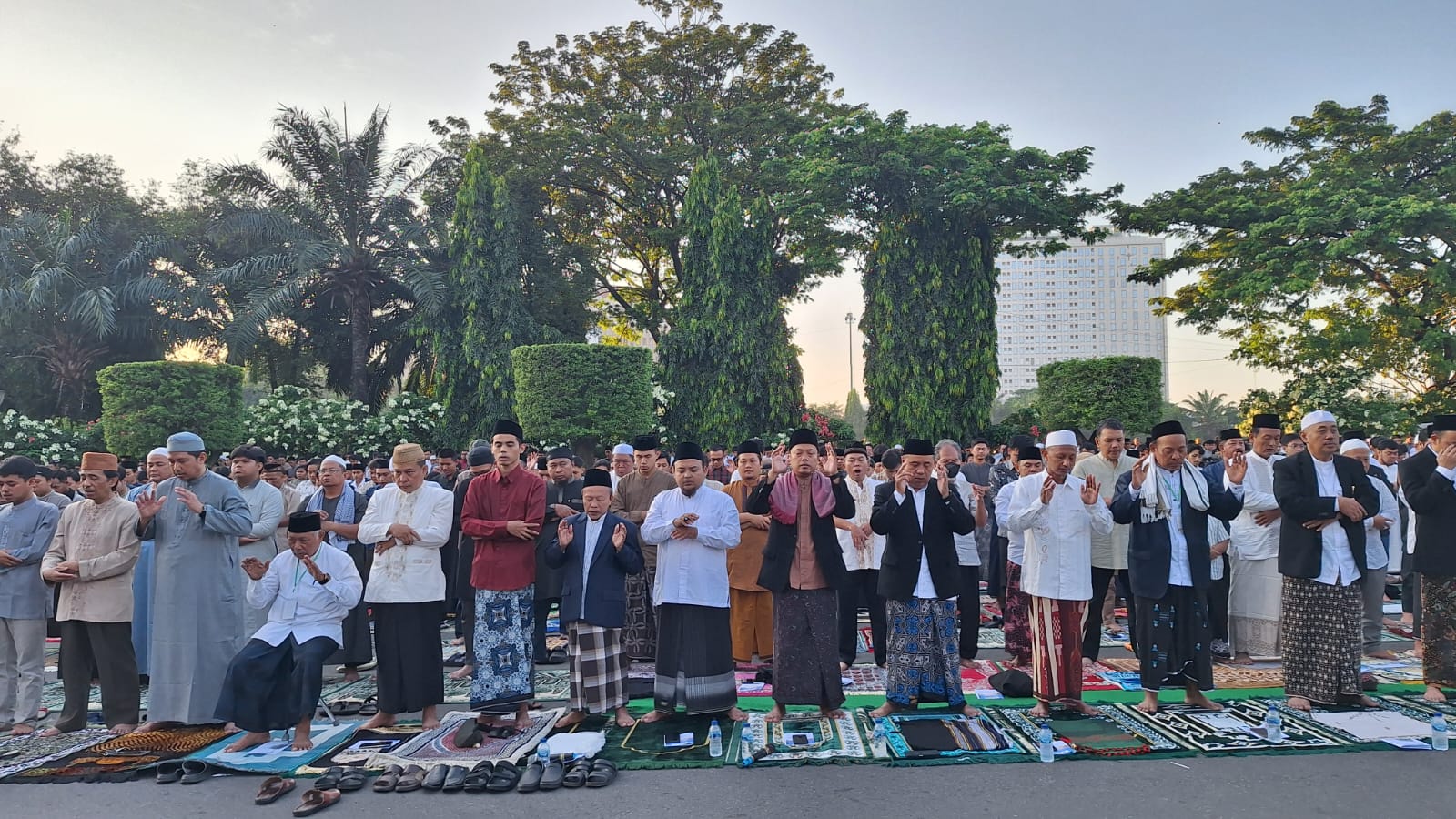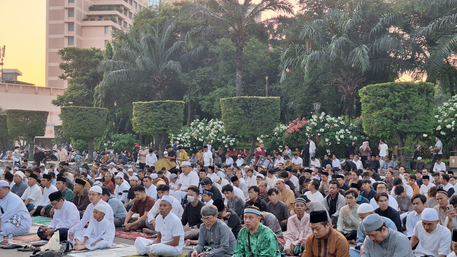 Ribuan masayakat Kota Semarang memenuhi Lapangan Pancasila di Simpanglima Semarang mengikuti salat Idul Adha, Jumat (6/6/2025). Sejak pukul 05.30, masyarakat mulai berduyun-duyun menuju Simpanglima.