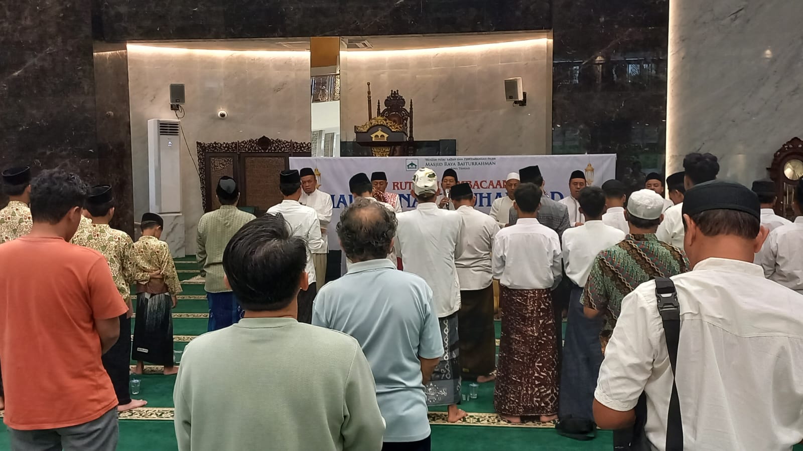 “Di akhir zaman orang-orang hidup dalam serba tidak menentu. Jika masih mendengar orang yang beristighfar dan bersalawat kepada Nabi Muhammad saw, maka Allah akan menahan kecepatan datangnya kiamat. Oleh karena itu kami menyelenggarakan kegiatan seperti ini. Kegiatan ini merupakan program Takmir Masjid Raya Baiturrahman, yang dilaksanakan setiap hari Jumat setiap akhir bulan,” papar KH. Multazam.