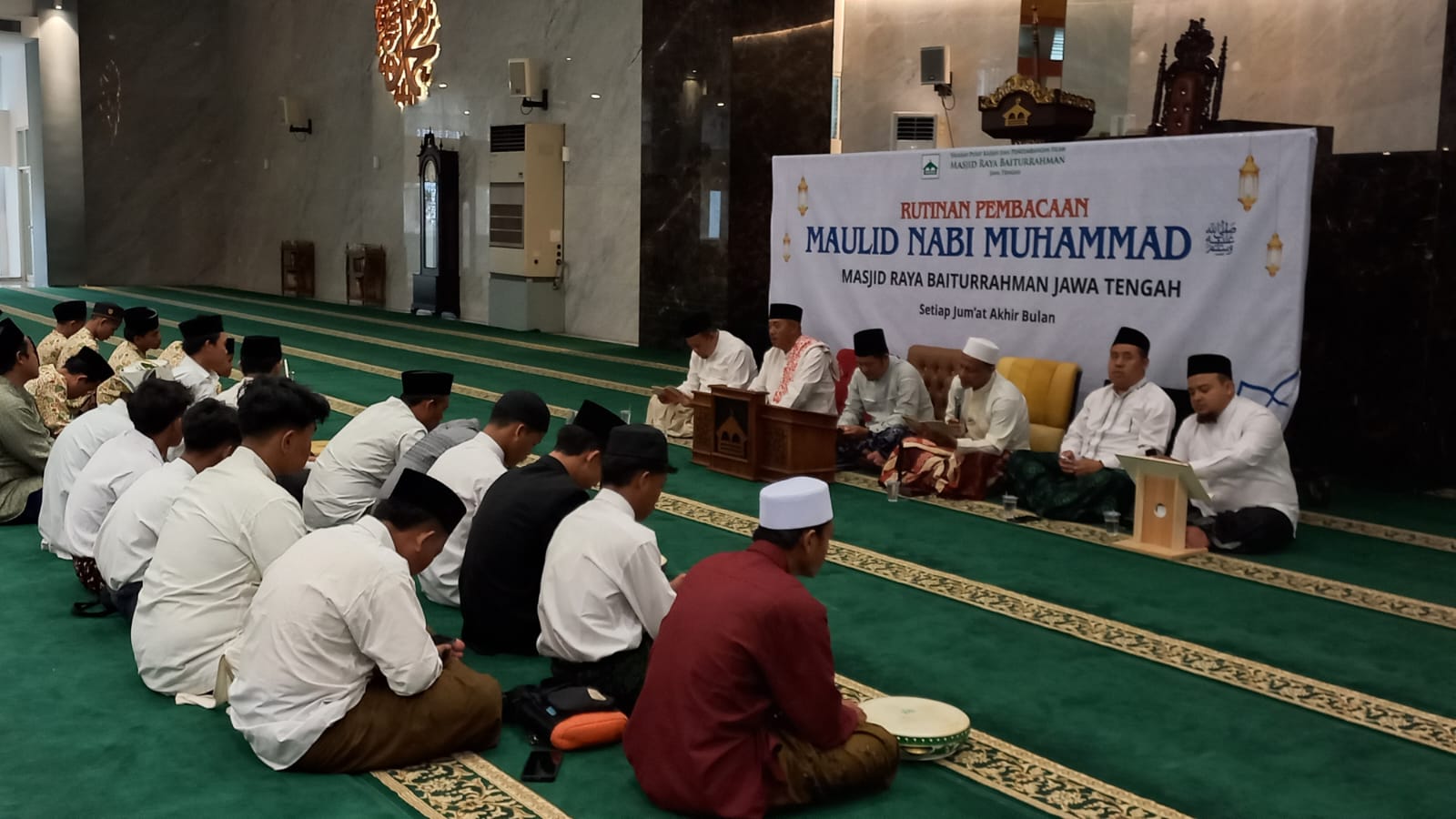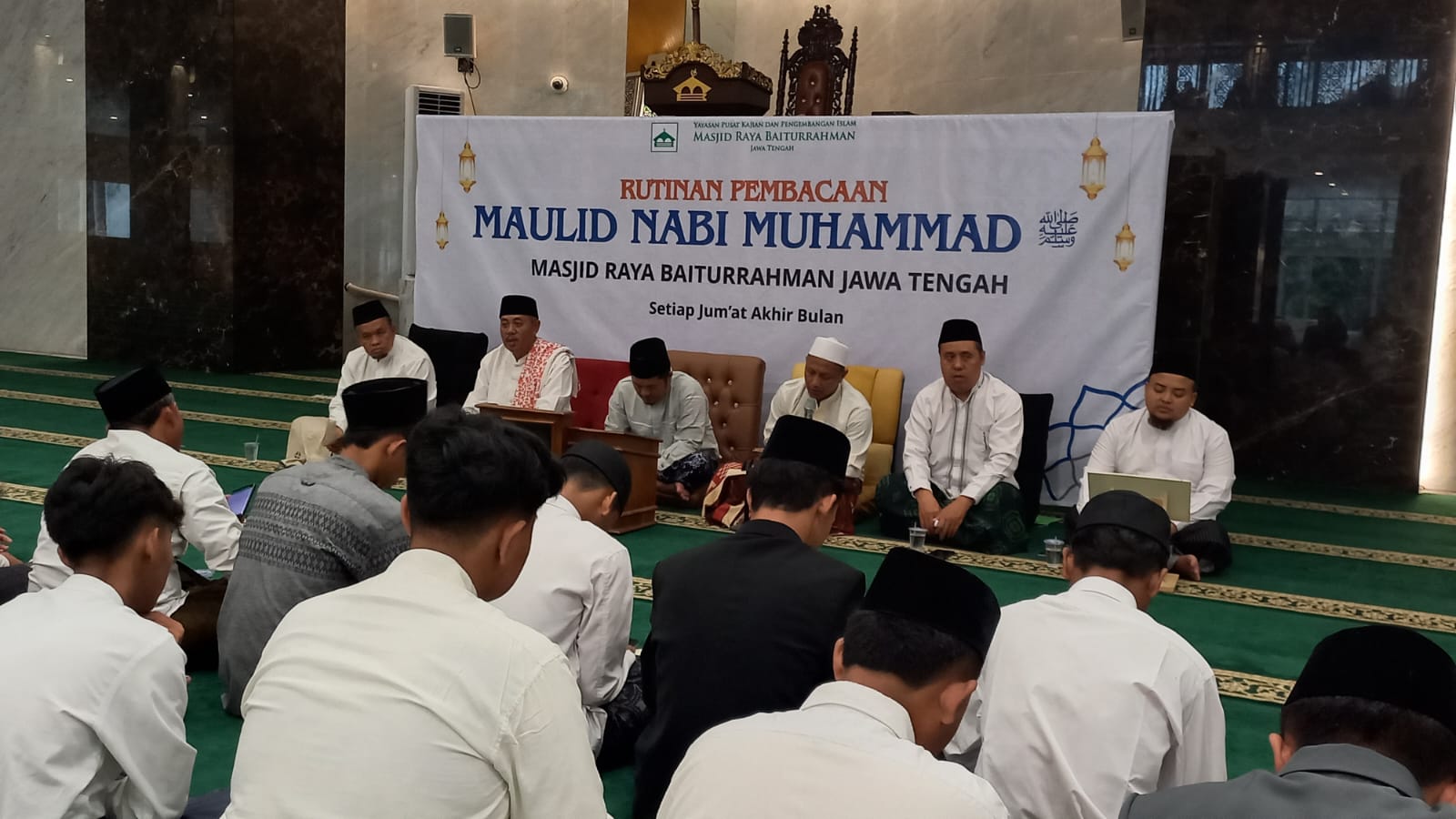 Takmir Masjid Raya Baiturrahman Jawa Tengah kembali menggelar kegiatan pembacaan Maulid Nabi Muhammad saw, Jumat (26/12/2025), di ruang salat utama Masjid Raya Baiturrahman Jalan Pandanaran 126 Semarang.