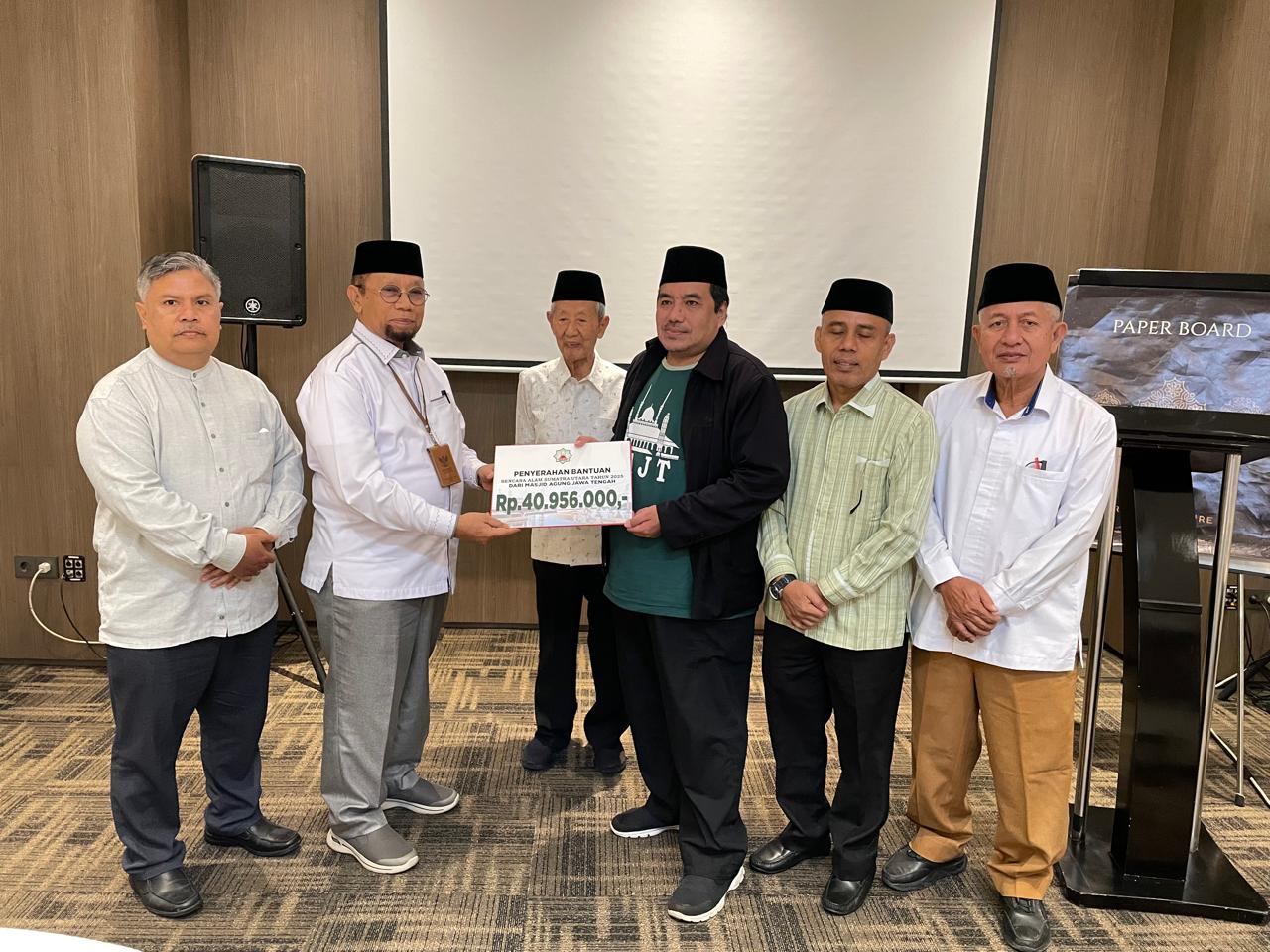 Tahap pertama ketiga masjid di Semarang itu menyerahkan bantuan berupa uang total Rp 198.636.000,00. Sejumlah uang tersebut berasal dari Masjid Raya Baiturrahman Rp 119.930.000,00, MAJT Rp 40.956.000,00, dan Masjid Agung Semarang sebesar Rp 37.750.000,00.